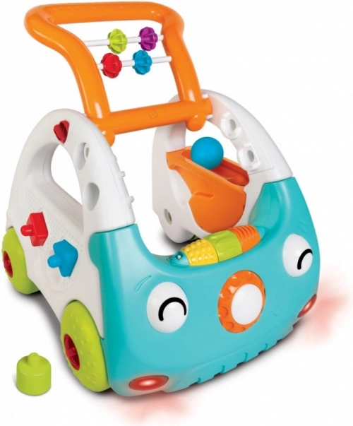 - Może służyć jako wsparcie dla malucha uczącego się chodzić (9M+), a także do zabawy w pozycji siedzącej (6M+) i stojącej (12M+).