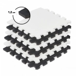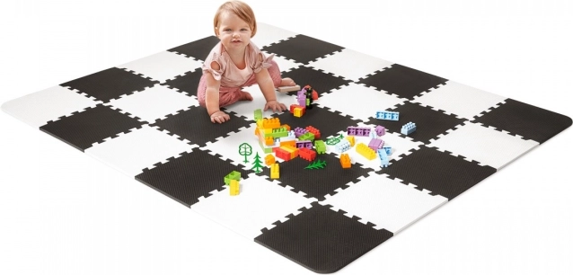Piankowe puzzle Luno w ponadczasowej czarno-białej kolorystyce zamienią każdy dziecięcy kącik w wygodne i bezpieczne miejsce do zabawy. Dzięki grubości 1,2 cm świetnie amortyzują uderzenia i tłumią hałas, a także skutecznie izolują od chłodnej podłogi – idealne na panele, płytki czy linoleum.