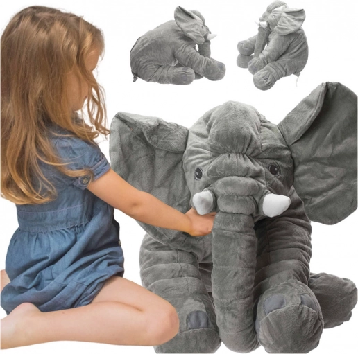 Słoń o długości ok. 60 cm jest wystarczająco duży, by posłużyć także jako wygodne podparcie lub zamiennik poduszki podczas czytania i odpoczynku. Świetny pomysł na prezent dla dzieci, który rozświetli każdy pokój dziecięcy.