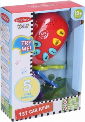 Interaktywne kluczyki dla dzieci z efektami dźwiękowymi i świetlnymi marki Infunbebe, które naśladują prawdziwe kluczyki samochodowe i zapewniają godziny zabawy.