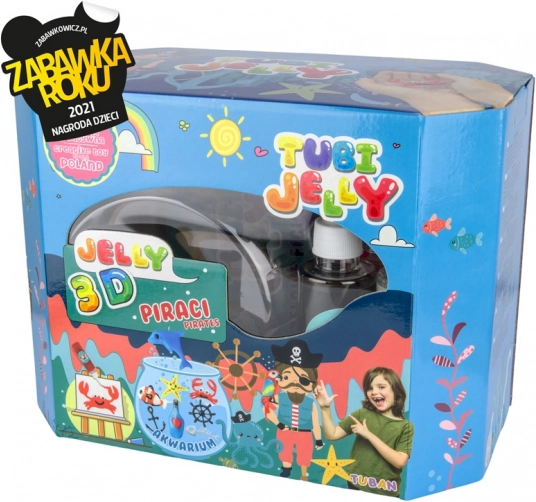 Zamień swój pomysł w wyjątkową morską przygodę 3D. Zestaw Tubi Jelly piraci pozwala łatwo malować kształty żelem na folii, utwardzić je w aktywatorze, a następnie umieścić w akwarium z wodnymi kryształami. Ciepła woda przyspieszy wzrost kryształów i Twoja piracka scena ożyje w mgnieniu oka.