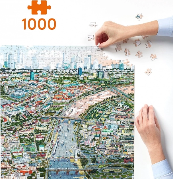 Przygotuj się na wciągające wyzwanie i zwiedzaj Warszawę „palcem i oczami” na pięknie ilustrowanym obrazie. Puzzle 1000-elementowe ucieszą miłośników miejskich motywów, rodziny oraz doświadczonych układaczy. Możesz układać je samodzielnie, z rodziną lub przyjaciółmi – tak, jak lubisz.