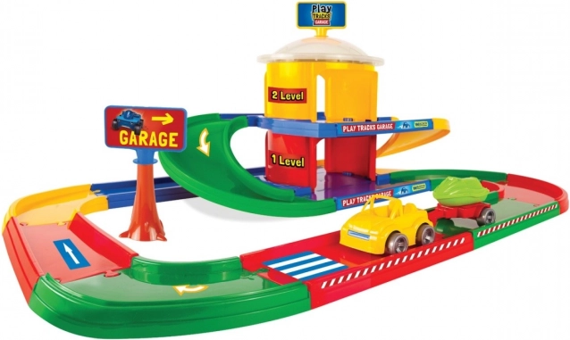 Dwupoziomowy garaż WADER PLAY TRACKS z torem 3,4 m i 2 autkami