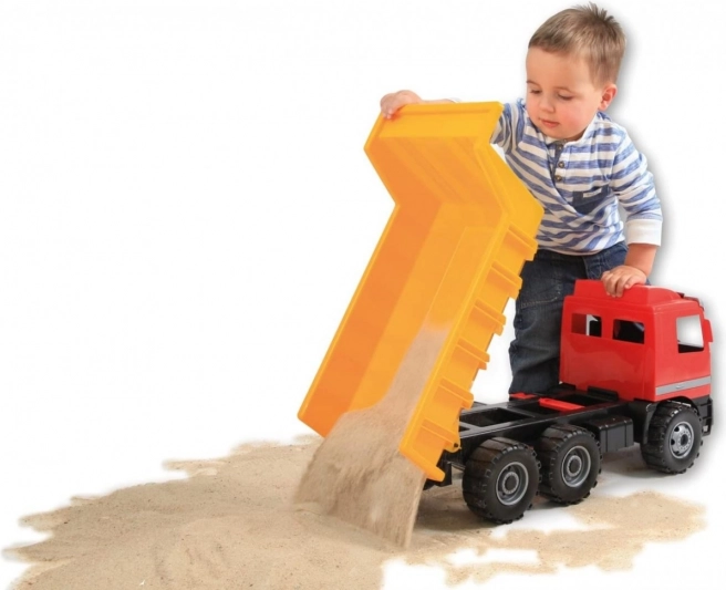 Wywrotka wykonana jest z trwałego plastiku, dzięki czemu nadaje się do użytku na zewnątrz jak i w pomieszczeniach.