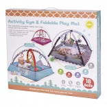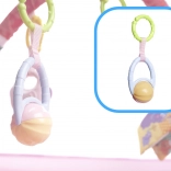 Ta kolorowa mata do zabawy oferuje bogatą powierzchnię z łukami pełnymi wiszących zabawek.