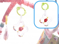 • Mata z zabawkami zawieszonymi na pałąkach: Kolorowe zabawki przyciągają uwagę maluszka i motywują do wzmacniania mięśni szyi, rąk i nóg.