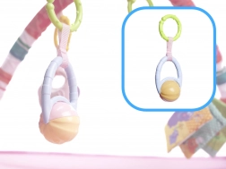 Ta kolorowa mata do zabawy oferuje barwną przestrzeń z pałąkami pełnymi zawieszanych zabawek.