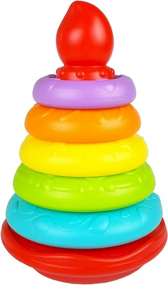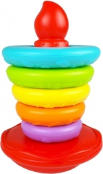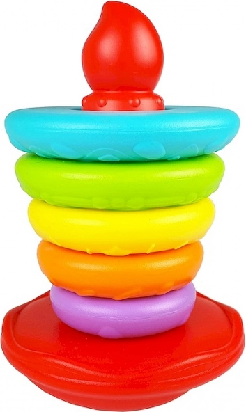 Ta kolorowa konstrukcja oferuje świetną okazję dla dzieci do zabawy i jednoczesnego rozwijania umiejętności. Wystarczy umieścić pierścienie w różnych kolorach i rozmiarach na huśtawkowej podstawce, dzięki czemu dzieci uczą się rozpoznawania kolorów i rozmiarów.