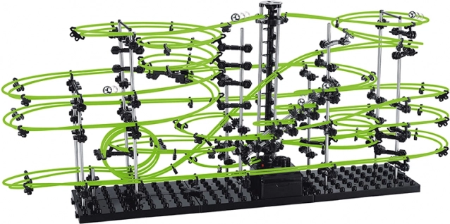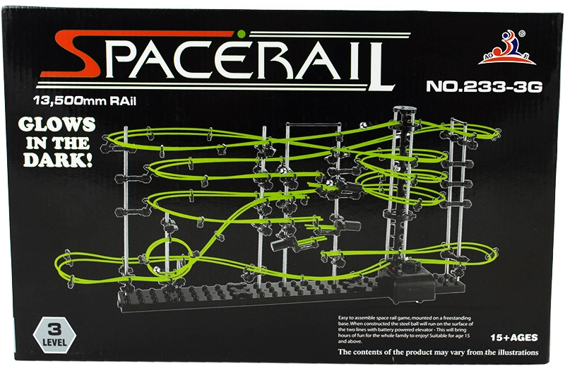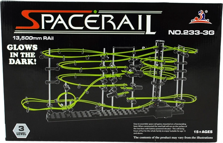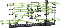 SPACERAIL Glow to kreatywny zestaw konstrukcyjny dla miłośników techniki, logiki i budowania. Z solidnych elementów z plastiku i metalu oraz fosforyzującego włókna złożysz dopracowany tor kulkowy na stabilnej podstawie. W trakcie budowy formujesz łuki, pętle i zjazdy, dopracowując idealny przejazd kulek.