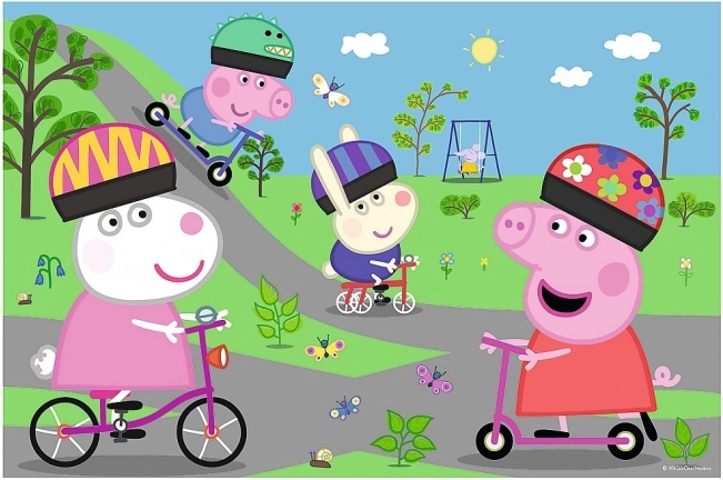 Odkryj radość układania z motywem „Aktywny dzień z Peppą”. Duże elementy są idealne dla młodszych dzieci – wygodnie leżą w dłoni, precyzyjnie do siebie pasują, a dzięki specjalnemu kalandrowanemu papierowi z delikatnym połyskiem wygodnie się je układa przy różnym oświetleniu.