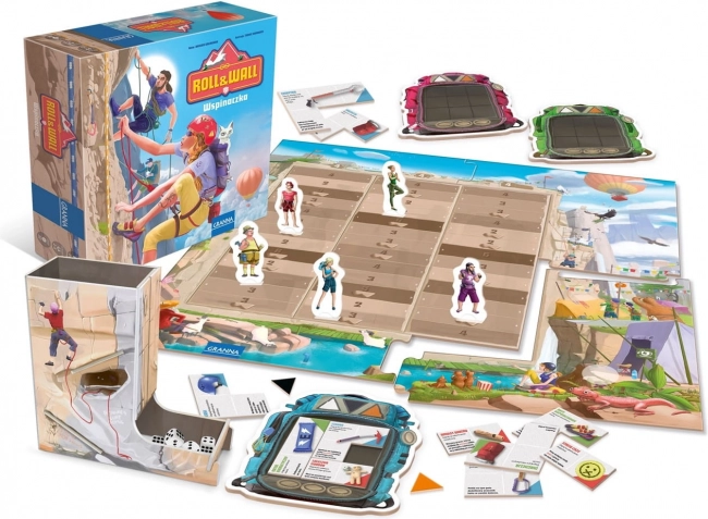 Roll & Wall to żwawa rodzinna gra, w której uczestnicy stają się wspinaczami rywalizującymi o zdobycie szczytu. Każda tura to wybór: ryzykować z mniejszą liczbą kości, czy wybrać bezpieczniejszy rzut z większym zapasem? Aby posunąć się naprzód, trzeba wyrzucić wartość równą lub wyższą niż wymaga pole na trasie – ale uwaga, użyte kości wracają dopiero w kolejnej rundzie.