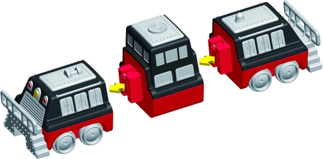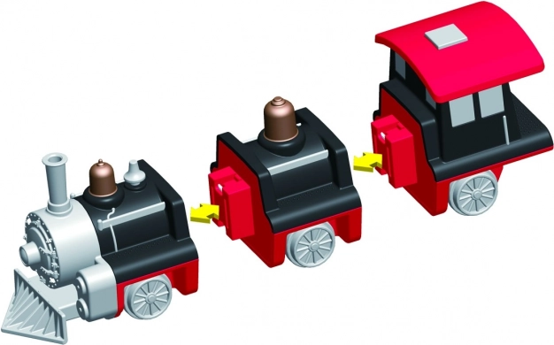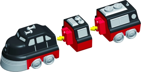 W opakowaniu jest 9 elementów, z których złożysz 3 przygotowane pociągi. Zmieniając moduły, stworzysz dziesiątki oryginalnych wariantów bez ograniczeń wyobraźni.