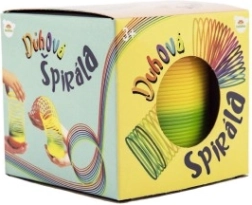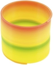 Zabawka dla małych i dużych – tęczowa plastikowa sprężyna o średnicy 7,5 cm. Świetnie schodzi po schodach, płynnie przelewa się z dłoni do dłoni i oferuje nieskończoną dawkę prostej zabawy dla dzieci od 3 lat.