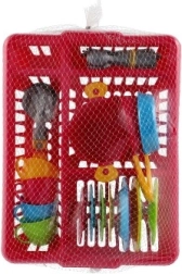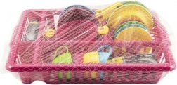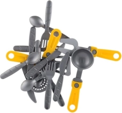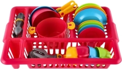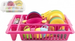Wesoły dziecięcy zestaw kuchenny w praktycznym ociekaczu zapewnia godziny kreatywnej zabawy. Zawiera wszystko, czego potrzebują mali kucharze: talerzyki, filiżanki z podstawkami, sztućce, garnek z pokrywką i patelnie. Intensywne kolory przyciągają uwagę i rozwijają wyobraźnię, motorykę małą oraz nawyki porządku – po „gotowaniu” naczynia po prostu odkłada się do ociekacza, jak u mamy.