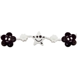 Czarno-biała zawieszana barierka z kwiatkami i gwiazdką przyciąga uwagę maluszka i zajmuje go podczas spacerów. Łatwe mocowanie za pomocą haczyków do wózka lub łóżeczka.