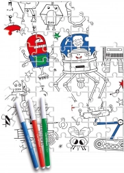 Puzzle, 3 flamastry (niebieski, czerwony, zielony)