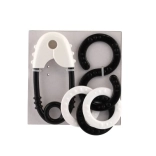 Ten zestaw gryzaków zawiera klasyczny spinacz i ośmiokąt z pierścieniami.