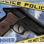 Metalowy policyjny pistolet na 8 naboi z bębenkiem.