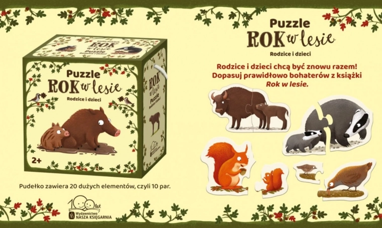 Odkryj magię lasu z dwuelementową układanką, w której dzieci łączą rodziców z młodymi. Duże i wytrzymałe elementy, piękne ilustracje autorstwa Emilii Dziubak oraz zabawna, edukacyjna forma wspierają poznawanie zwierząt, rozwój wyobraźni i cierpliwości. Idealne pierwsze puzzle dla maluchów – zacznij od kilku par i stopniowo dodawaj kolejne.