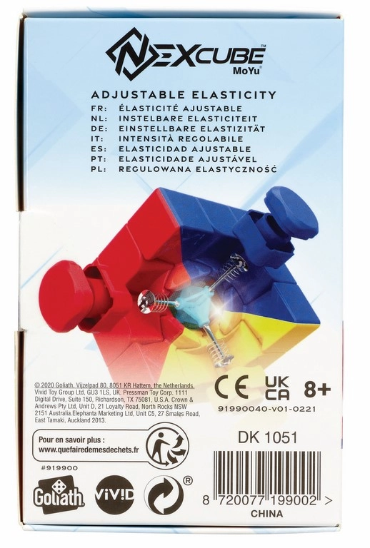 Kostka Nex Cube firmy Goliath to wyjątkowa kostka wyprodukowana przez znaną i cenioną firmę MoYu. Zamiast łatwo rysujących się naklejek zastosowano pełnokolorowe tworzywo. Dzięki użyciu pełnokolorowych plastików, a nie malowania górnych warstw, ścianki kostki nawet po kilku miesiącach użytkowania zachowają swoje barwy. Środki kostki (pola środkowe) można wyjąć, a pod nimi znajduje się śruba, dzięki której można ustawić „docisk” każdej ze ścian. Kostka ma specjalnie profilowane elementy, dzięki którym płynnie „tnie” rogi, co dodatkowo przyspiesza jej układanie.