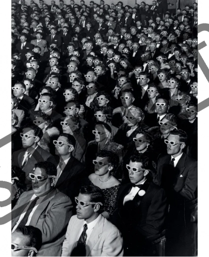 Klasyczna fotografia publiczności w okularach 3D doda wnętrzu stylu i wyrazistego kontrastu. Po ułożeniu obraz jest gotowy do oprawienia.