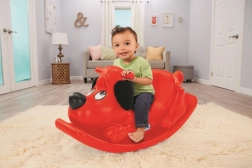 Zintegrowane uchwyty na głowie pieska oraz stabilne płozy zapewniają bezpieczne bujanie dla najmłodszych użytkowników.