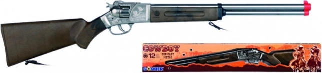 Ta kowbojska metalowa strzelba na 12 nabojów z bębnem jest idealna do gier tematycznych, kostiumów oraz ekspozycji kolekcjonerskich. Solidna metalowa konstrukcja i staranne wykończenie marki Gonher nadają zabawce autentyczny wygląd i długą żywotność.