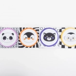 Dwustronna sensoryczna książeczka GAGAGU z motywem tygryska dla wieku 0+ rozwija wzrok, dotyk i słuch maluszka. Oferuje wysoki kontrast czarno-białych wzorów, haftowane elementy o różnych fakturach dla paluszków, szeleszczące klapki oraz zabawną zabawę „a kuku”. Świetna do pierwszego odkrywania kształtów, kolorów i zwierzątek.
