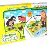 Muzyczna mata Krecika jest idealnym narzędziem do rozwijania umiejętności słuchowych dzieci. Z Krecikiem w ogrodzie nauczą się rozpoznawać dźwięki takie jak krowa, konik, żabka i inne. Wszystko to znajduje się na miękkiej macie, która łatwo reaguje na dotyk:
