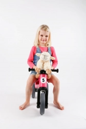 Bezpieczeństwo wspierają ograniczony zakres skrętu widelca, poszerzone końcówki chwytów oraz niska waga ułatwiająca manewrowanie. Dzieci rozwiną dzięki niemu motorykę, koordynację i balans, ciesząc się aktywną zabawą.