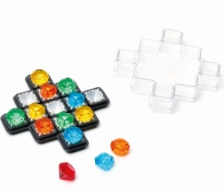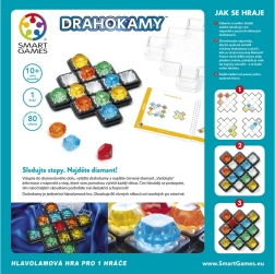 Gra Klejnoty należy do popularnej serii logicznych gier SmartGames przeznaczonych przede wszystkim dla jednego gracza. Każde zadanie zawiera unikalny zestaw wskazówek dotyczących położenia klejnotów. Twoim zadaniem jest prawidłowo ułożyć wszystkie elementy na planszy i odkryć pozycję czerwonego diamentu. Każdy element jest niepowtarzalny, a każde zadanie ma tylko jedno rozwiązanie.