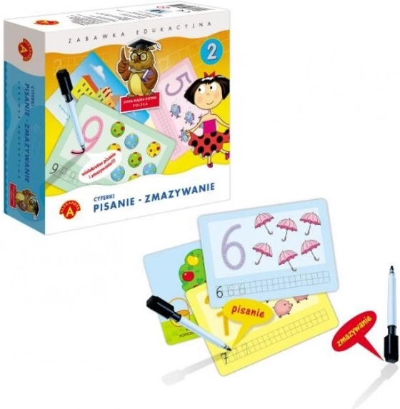 Zabawa edukacyjna dla przedszkolaków, która pomaga dzieciom opanować prawidłowe kształty cyfr, ich rozpoznawanie oraz podstawy liczenia. Dzięki tablicom do wielokrotnego użytku z ścieralnym markerem dzieci trenują także motorykę małą, spostrzegawczość i koncentrację – wszystko w formie zabawy.