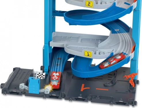 Zamień domowe wyścigi w pokaz adrenaliny. Wieża wyścigowa HOT WHEELS City transformuje się 2 w 1 – z wysokiego, pojedynczego toru w podwójny tor wyścigowy do pojedynków autek bok w bok. Dwukierunkowa winda działa w obu trybach i automatycznie dopasowuje się podczas przemiany. Nie brakuje startowej bramki do uczciwego, jednoczesnego startu i dynamicznych zjazdów pełnych zakrętów.
