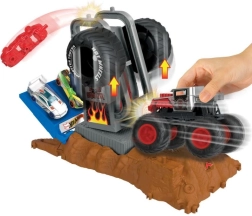 Wbudowany mechanizm startowy wystrzeliwuje auto lub monster truck w gwałtowny skok. Dzieci naciskają dźwignię i cieszą się natychmiastową akcją.