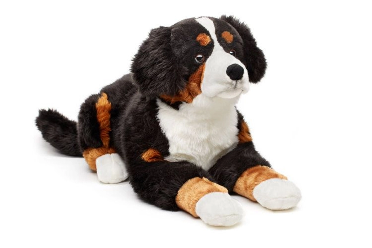 Ten miękki pluszak inspirowany rasą berneński pies pasterski zachwyca autentycznym trójkolorowym umaszczeniem i uroczym wyrazem. Dzięki imponującej długości ok. 65 cm (bez ogona) jest idealny do przytulania, jako dekoracja pokoju oraz towarzysz w podróży.