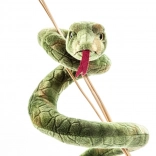 Ten zielony pluszowy wąż przynosi dzieciom delikatne przytulenie i mnóstwo fantazji. Jest przyjemnie miękki, bezpieczny dla niemowląt i dzięki swoim wymiarom wygodnie leży w dłoni. Realistyczne detale, takie jak czerwony rozdwojony języczek i subtelna tekstura „łusek”, czynią z zabawki ulubionego towarzysza do łóżeczka i wózka.