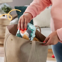 Lekki, miękki i łatwy do przechowywania. Złożysz go do torby, a dzięki pętelce przypniesz do wózka – sensoryczna zabawa gdziekolwiek jesteś.