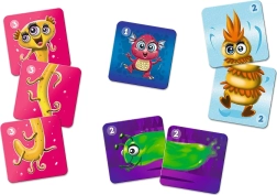 Każda karta przedstawia obrazek uroczego potworka, co dodatkowo przyciąga uwagę dzieci. Opakowanie w pudełku z uchwytem jest praktyczne do łatwego przenoszenia, więc tę zabawę można zabrać ze sobą gdziekolwiek.