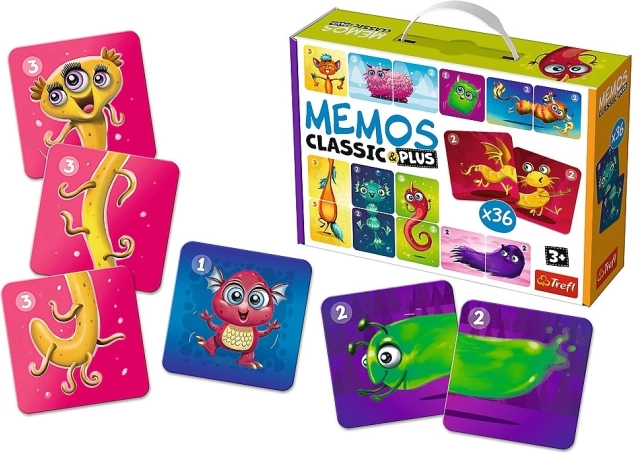 Pexeso Classic & Plus Urocze potworki 3w1 to idealna propozycja dla małych dzieci, które lubią podejmować nowe wyzwania. Z tą grą mogą zacząć od prostego wariantu i stopniowo próbować trudniejszych poziomów. Gra zawiera 36 dużych, kartonowych kart z uroczymi ilustracjami, które służą nie tylko do ćwiczenia pamięci, ale także poprawy koncentracji.