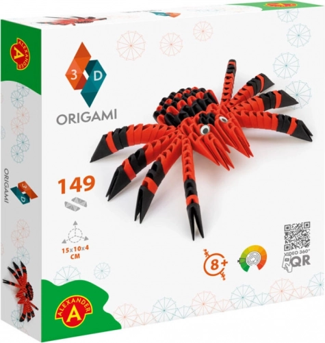 Kreatywny zestaw Alexander 3D origami pająk: 149 elementów, instrukcja i wideo, bez kleju. Rozwija motorykę i kreatywność. Poziom 3/12, wymiary 15×10×4 cm.