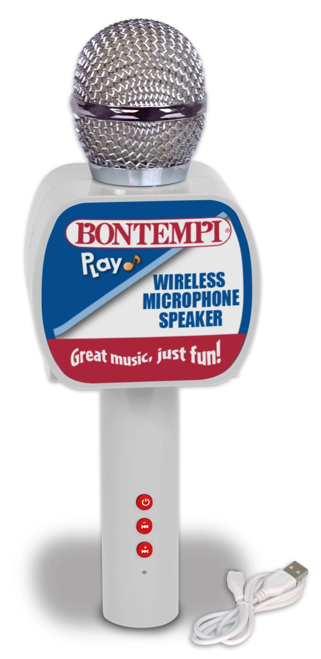 Wygodę zapewniają zintegrowany uchwyt na telefon, czytelne przyciski do sterowania głośnością i efektem echo oraz akumulator zapewniający długie godziny zabawy. Idealny także dla dzieci od 5 lat – rozwija pewność siebie, poczucie rytmu i radość ze śpiewania.