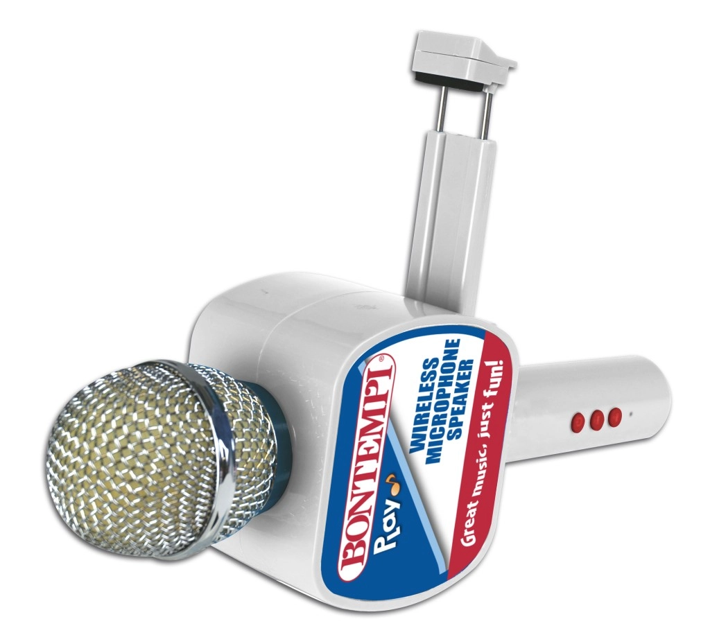 Ciesz się karaoke kiedy chcesz i gdzie chcesz dzięki temu praktycznemu bezprzewodowemu mikrofonowi. Dzięki wbudowanemu głośnikowi, bezprzewodowemu połączeniu i prostemu sterowaniu jest idealny do domowego śpiewania, imprez i dziecięcych przyjęć. Uchwyt na telefon oraz efekt echa zapewnią jeszcze więcej zabawy.
