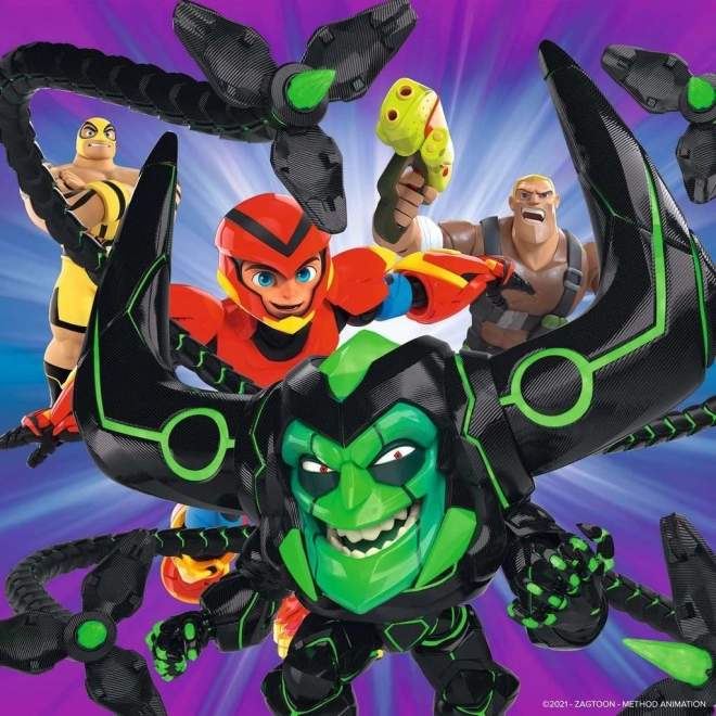 Ten zestaw zawiera trzy oddzielne obrazki po 49 elementów (razem 147 elementów) z dynamicznymi scenami ze świata Power Players. Dzieci spędzą długie godziny na układaniu, jednocześnie w naturalny sposób ćwicząc koncentrację i wyobraźnię przestrzenną. Dzięki precyzyjnie wycinanym elementom układanie puzzli jest łatwe i daje dużo radości.