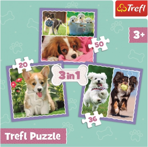 Odkryj z dziećmi świat puzzli z motywem szczeniąt. Ten zestaw 3w1 przynosi aż trzy obrazki w jednym opakowaniu, więc dzieci się nie nudzą, a przy tym stopniowo trenują cierpliwość, koncentrację i motorykę małą. Różny poziom trudności układanek stymuluje rozwój i daje radość z każdego ukończonego obrazka.