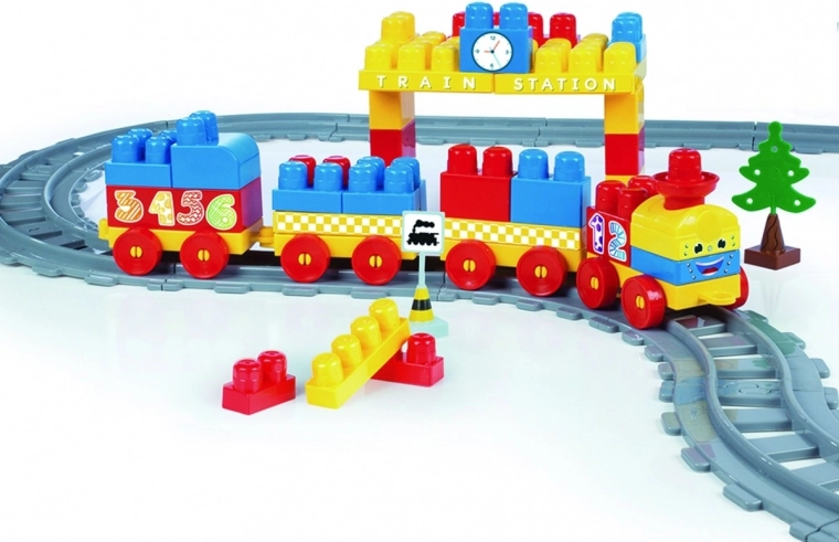 Zbuduj własną kolej i wyrusz w radosną podróż! Pociąg Baby Blocks to uniwersalna zabawka, która daje dzieciom radość z tworzenia i zabawy. Dzięki różnorodnym kształtom torów z łatwością ułożysz nieskończenie wiele wariantów tras o łącznej długości 3,35 m. Poszczególne elementy łatwo i solidnie się ze sobą łączą, dzięki czemu powstała konstrukcja jest stabilna.