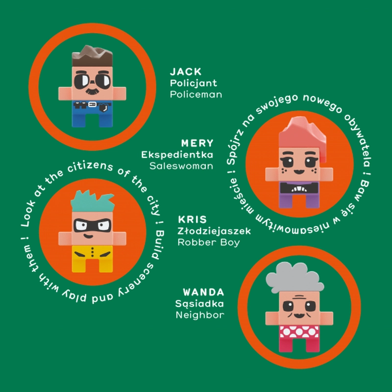 Tchnij życie w ruchliwe miejskie skrzyżowanie! Zbuduj sklep sprzedawczyni Mary, rozmieść światła drogowe i skonstruuj auto, którym jeździ złodziej Kris. Do dyspozycji masz aż 280 klocków i 4 unikalne figurki. Zestaw możesz złożyć według instrukcji lub puścić wodze fantazji i wznosić budowle, o jakich profesjonalnym architektom się nie śniło.