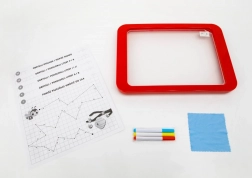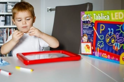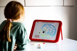 Tablica LED Carotina to idealne narzędzie edukacyjne dla dzieci. Oferuje program edukacyjny oparty na 30 kartach dydaktycznych, które można wykorzystać za pomocą metody kalkowania. Wystarczy umieścić kartę na papierowej podstawie i włożyć pod przezroczysty ekran tablicy. Rysowanie odbywa się za pomocą trzech fluorescencyjnych markerów, które są częścią zestawu. Dzięki tym markerom dzieci mogą rysować wielokrotnie i zmazywać rysunki za pomocą suchej ściereczki. Tablica LED jest wszechstronna jak klasyczna tablica i świeci niemal jak neonowy znak!