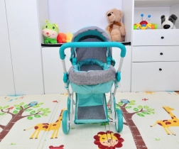 Dzięki lekkiemu metalowemu stelażowi, piankowej rączce i kółkom z pianogumy wózek łatwo prowadzić w domu i na zewnątrz. Praktyczny dolny koszyk mieści butelkę, ubranka czy pieluszki, a składana konstrukcja umożliwia szybkie złożenie na płasko i oszczędność miejsca. Pokrycie z wytrzymałego poliestru można łatwo zdjąć i wyprać, dzięki czemu wózek długo wygląda jak nowy.
