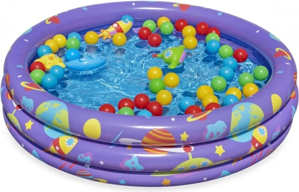 Ten kolorowy basen Bestway Intergalactic został zaprojektowany tak, aby dzieci cieszyły się pobytem na zewnątrz oraz zabawą w wodzie. Z trzema identycznymi dmuchanymi pierścieniami z kolorową grafiką i pojemnością 140 litrów, przynosi mnóstwo radości.