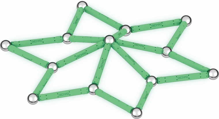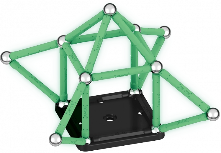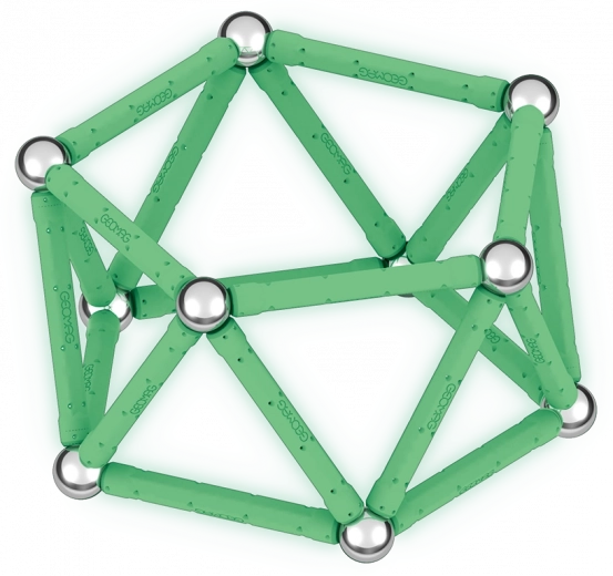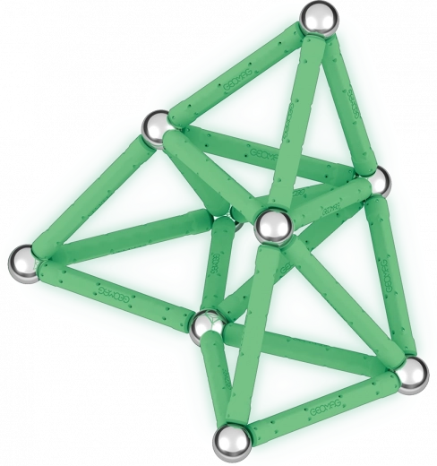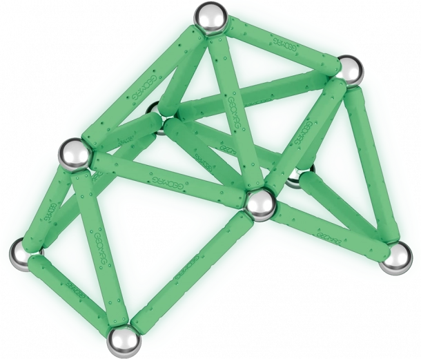GEOMAG Glow to oryginalny magnetyczny zestaw konstrukcyjny, który pozwala tworzyć nieograniczoną liczbę budowli za pomocą magnetycznych prętów i stalowych kulek. Dzięki fosforyzującym elementom twoje modele po naświetleniu będą w ciemności pięknie świecić – idealne do zabawnych eksperymentów i efektownych pokazów.